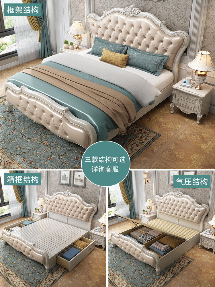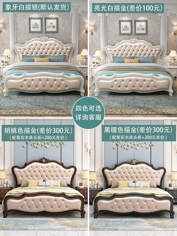 European style bed double bed master bedroom luxury leather king bed all solid wood bed modern simple 1.8 meters 1.5 meters princess bed