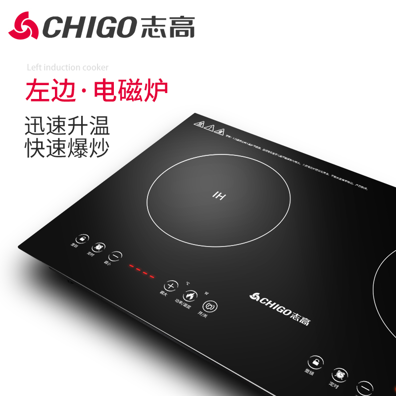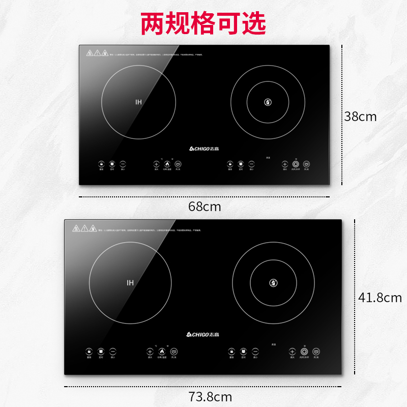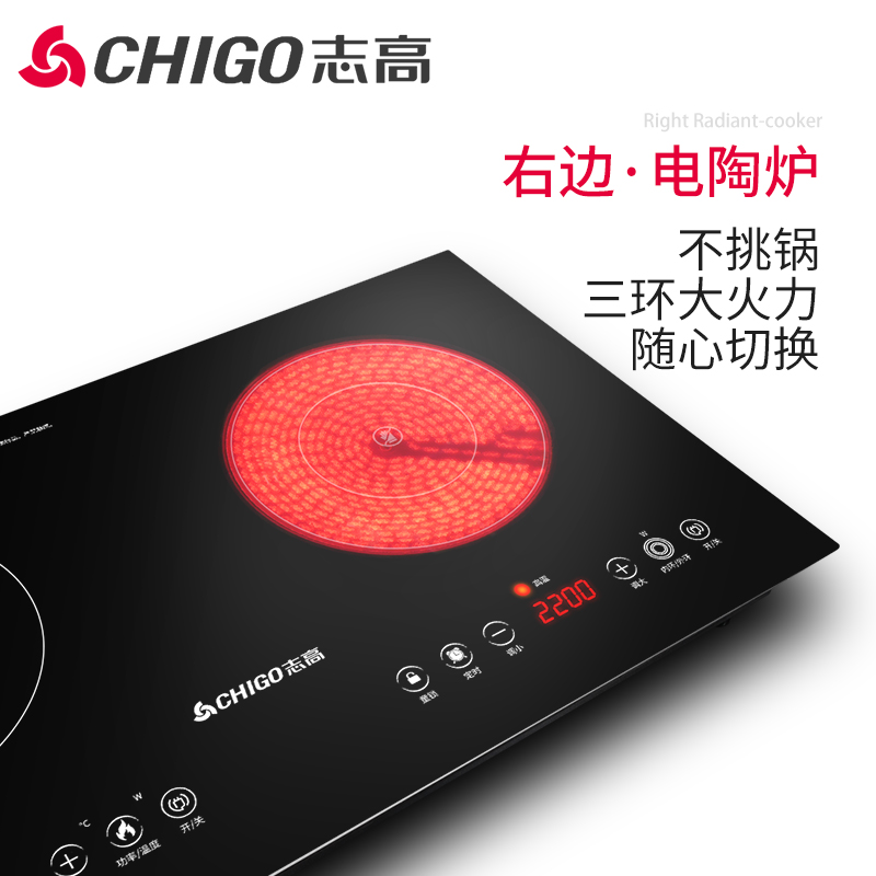 Chigo home embedded electromagnetic black crystal furnace double-head desktop stir-fry double-port gas furnace German imported technology mute