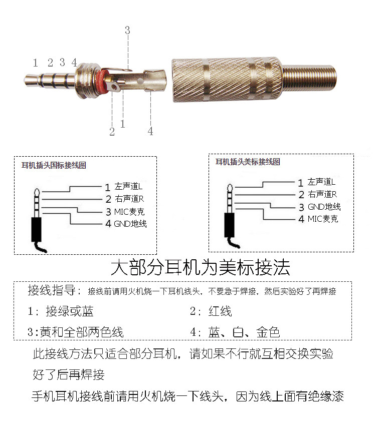 3 5 earphone plug mobile phone four sections 3 5mm plug with wheat 4 sections DIY audio head welding head