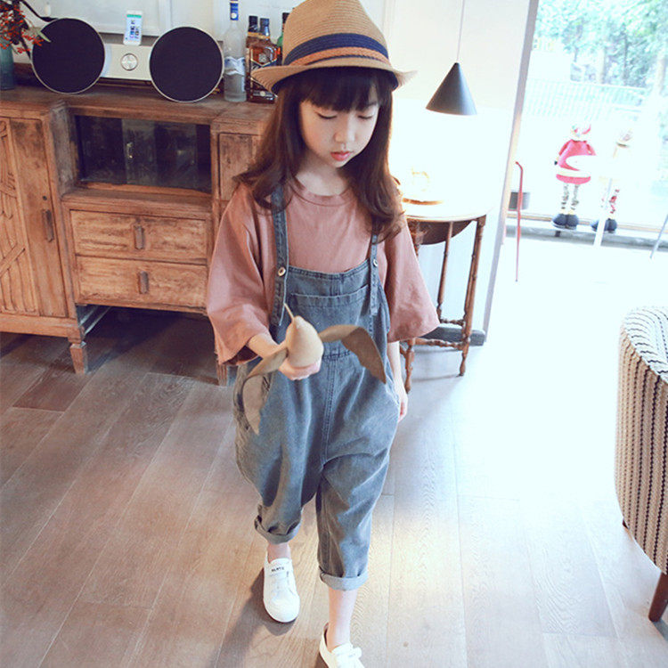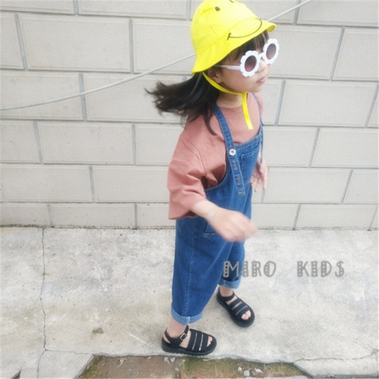 Children's baby bag pants Spring and summer men's and women's denim baby bag pants Korean version of the thin section of the Foreign school neutral baby nine-point suspenders