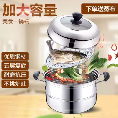 Steamer stainless steel pot with 2 layers and 3 layers of multi-layer compound bottom thickening steamer steamed bread steamed fish household induction cooker soup pot