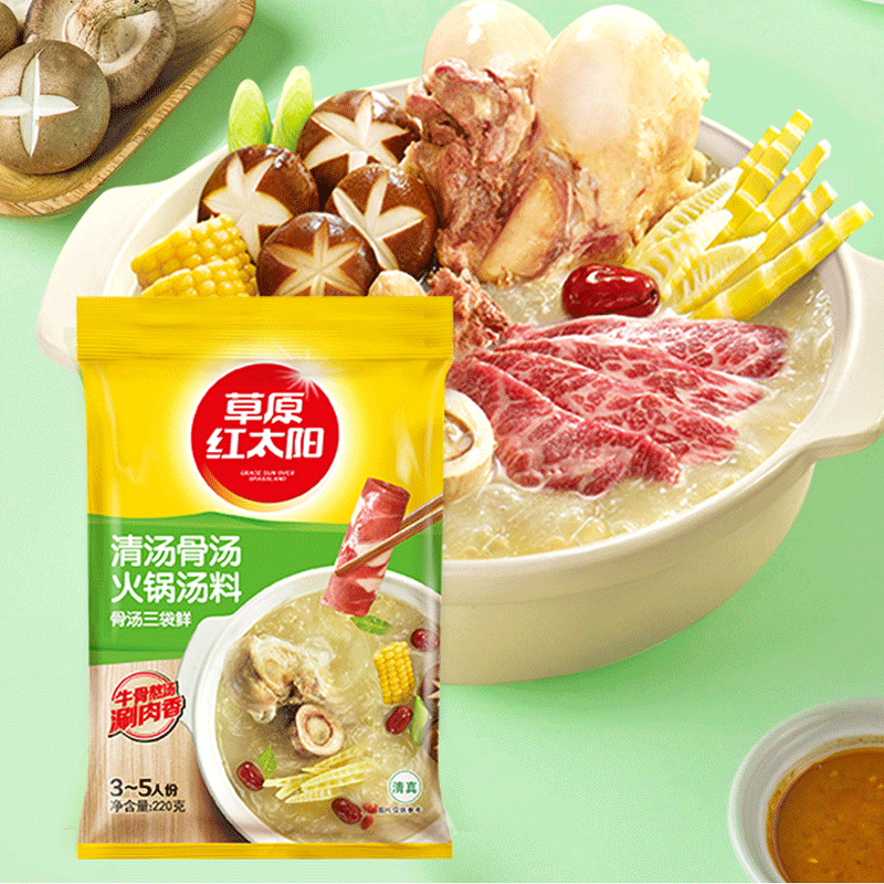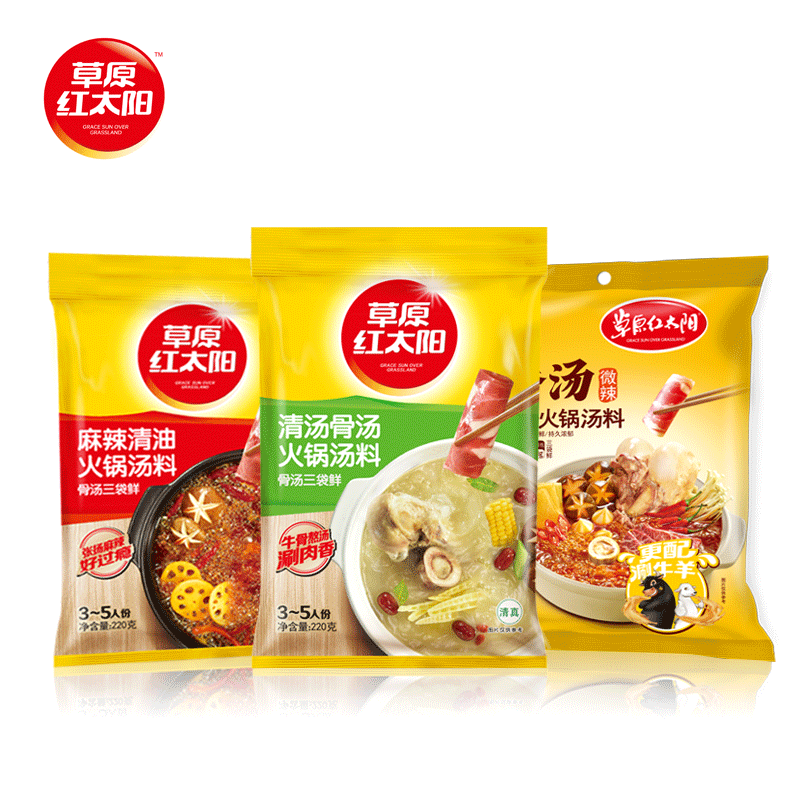 Grassland red sun hot pot soup base 220g * 3 home spicy soup mixed with mutton