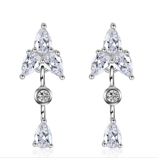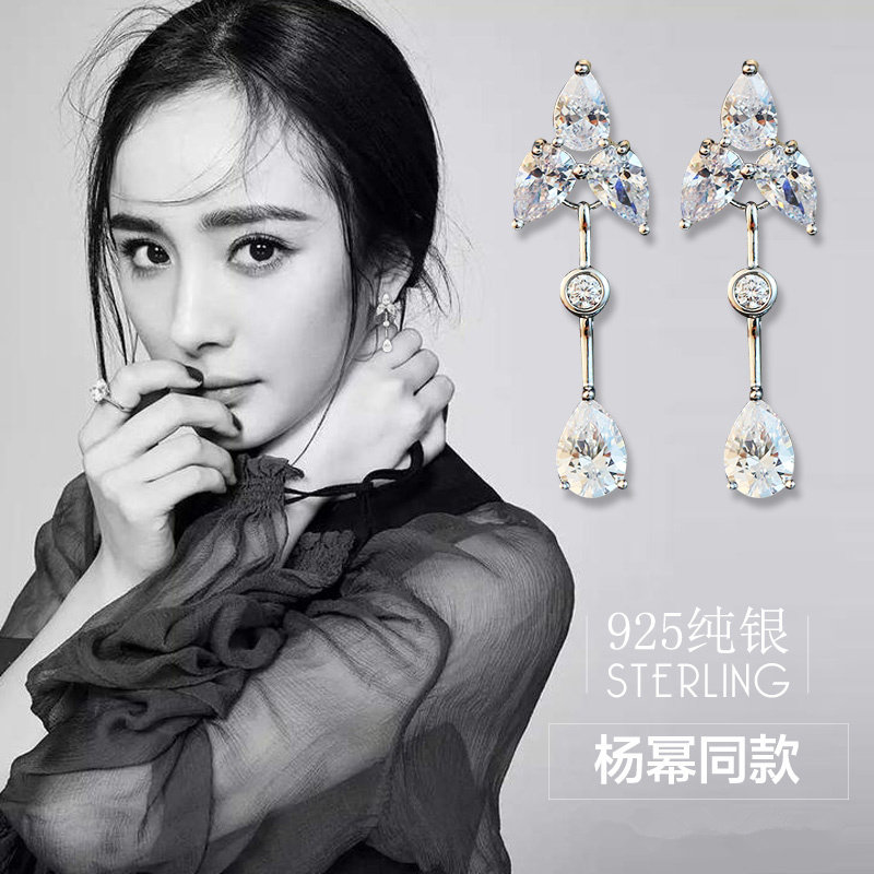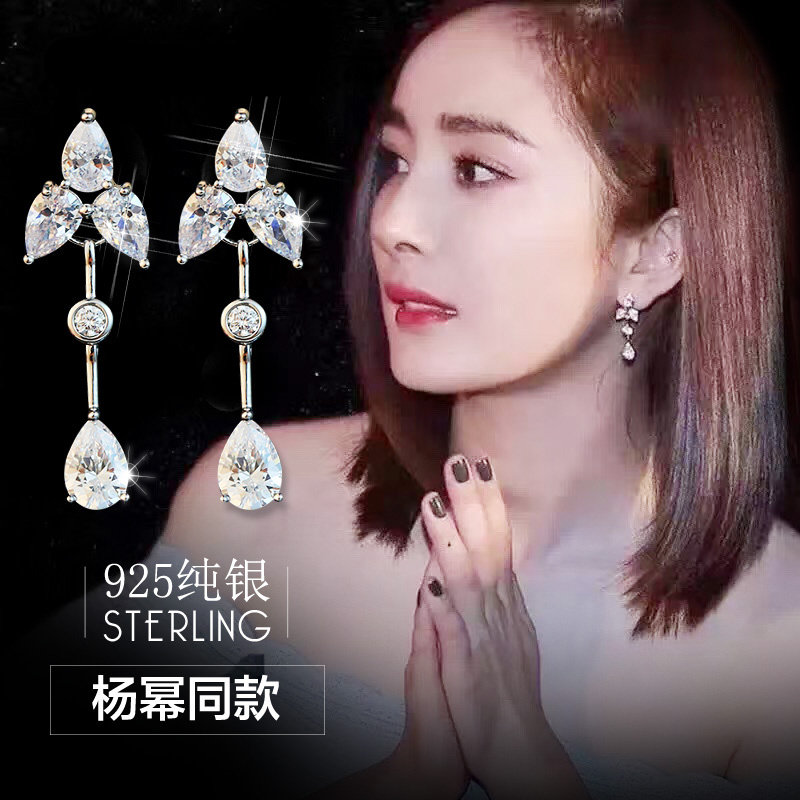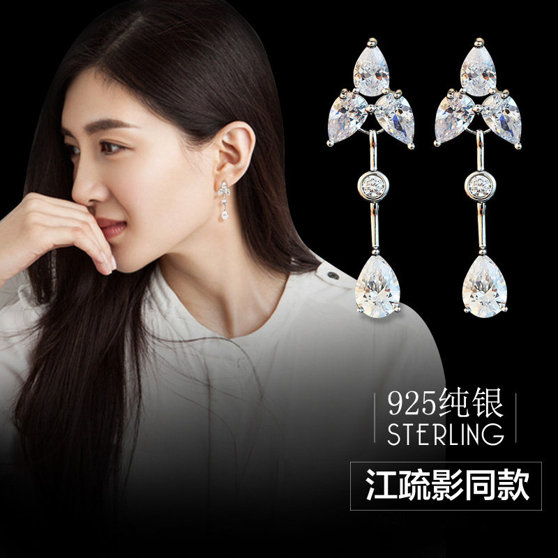 925 sterling silver new long earrings for women Japanese and Korean all-match temperament simple fashion zircon diamond stud earrings hypoallergenic