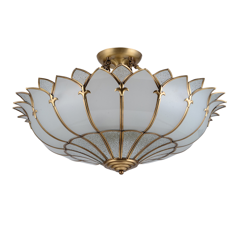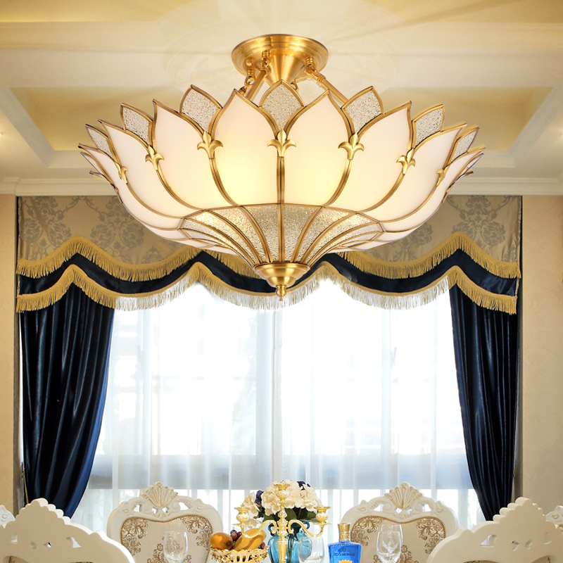Large number of total copper semi-suction top light large living room light bedroom bar with dining room lamp personality pure copper American petals semi-chandelier