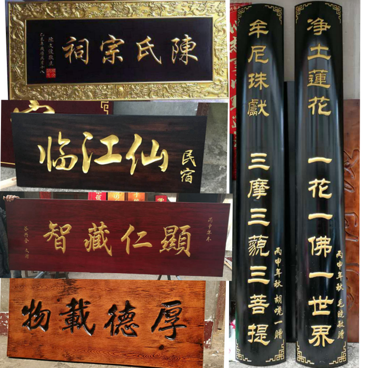 Dongyang wood carving solid wood plaque set to be antique door head shop creative circular arc couplet wooden wooden board lettering