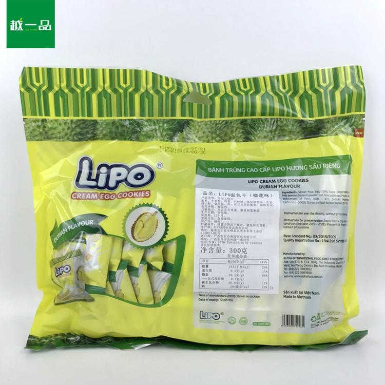 Vietnam imported specialty Lipo Li Portugal Durian flavor bread dry egg cake 300g biscuit snack 2 bags