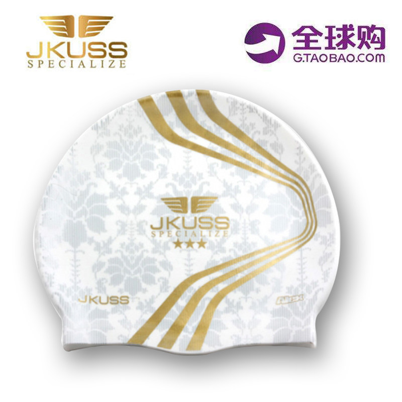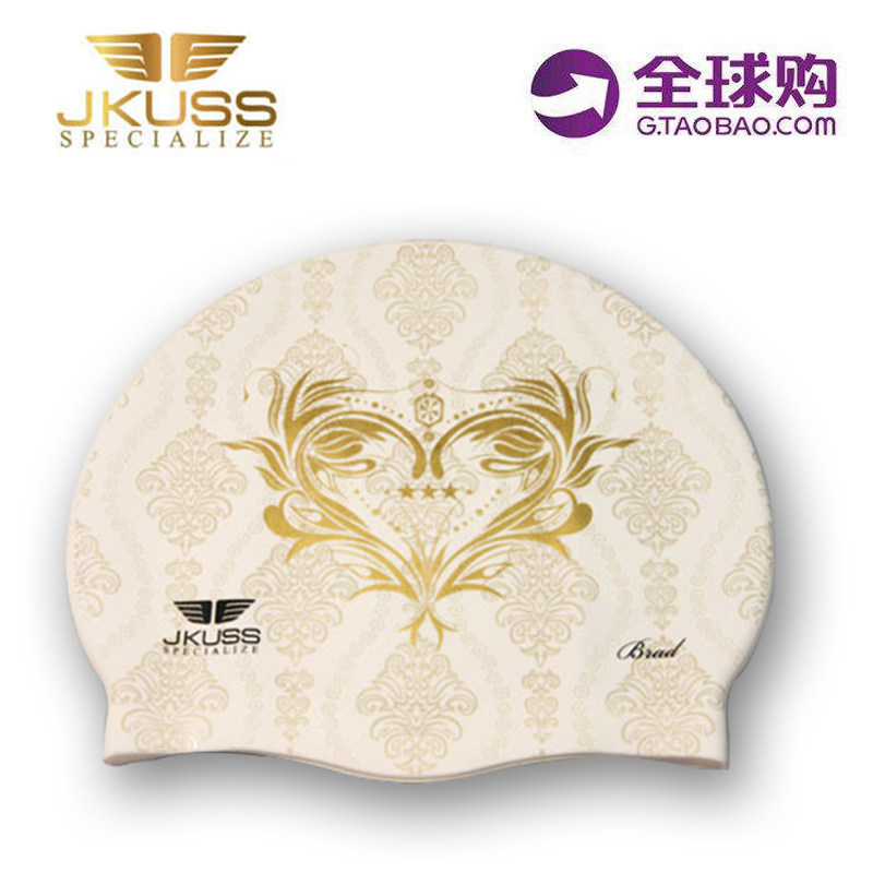 JKUSS swimming cap South Korean silicone waterproof swimming cap men and women long hair care ears printed adult swimming cap