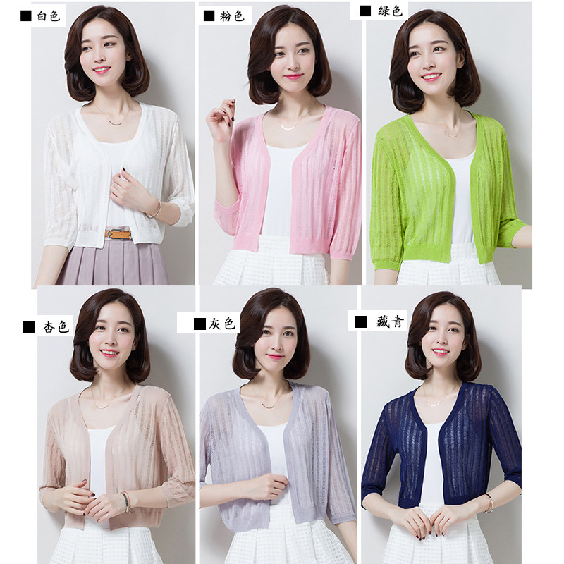 Summer dynamic brother and brother hollow knitted sweater women's cardigan thin short outer sun protection clothing ice silk small shawl jacket