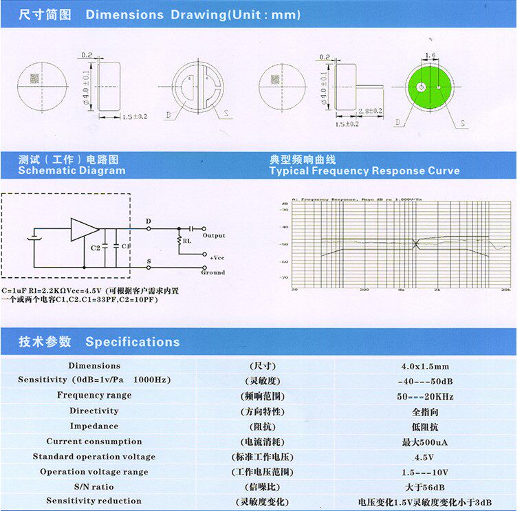 High-grade bluetooth speaker MIC microphone bluetooth headset call microphone 4015 welding wire capacitor microphone high sensitivity