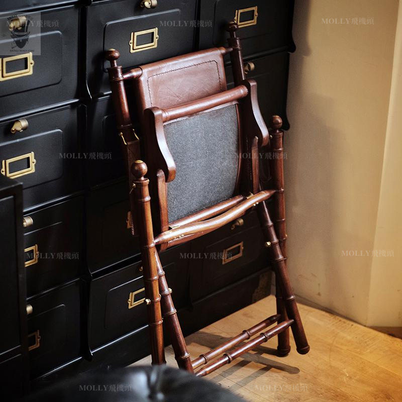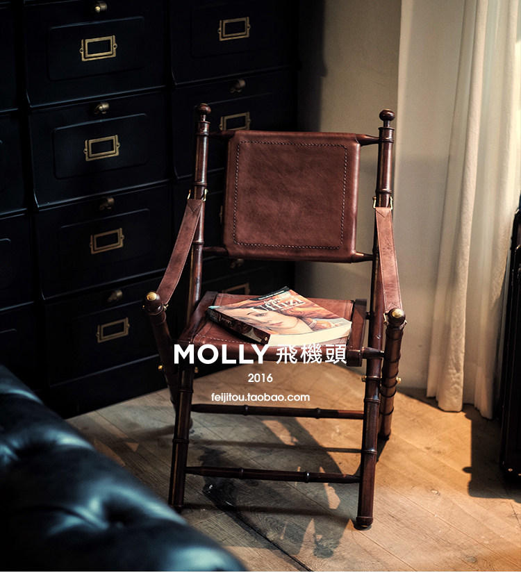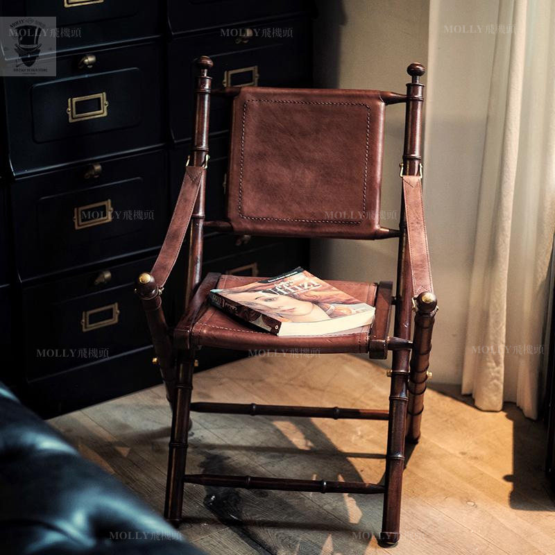 Molly aircraft head Dutch import Nordic retro made old cow leather chair oak casual dining chair Folding Chair Single Chair