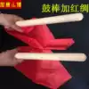 A pair of big drum sticks plus a pair of red silk sticks Plus a pair of red and yellow silk sticks