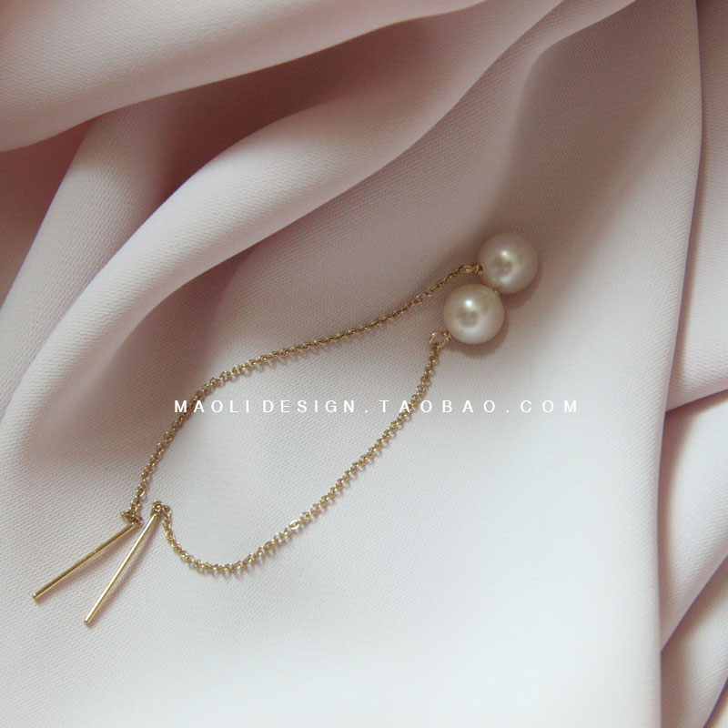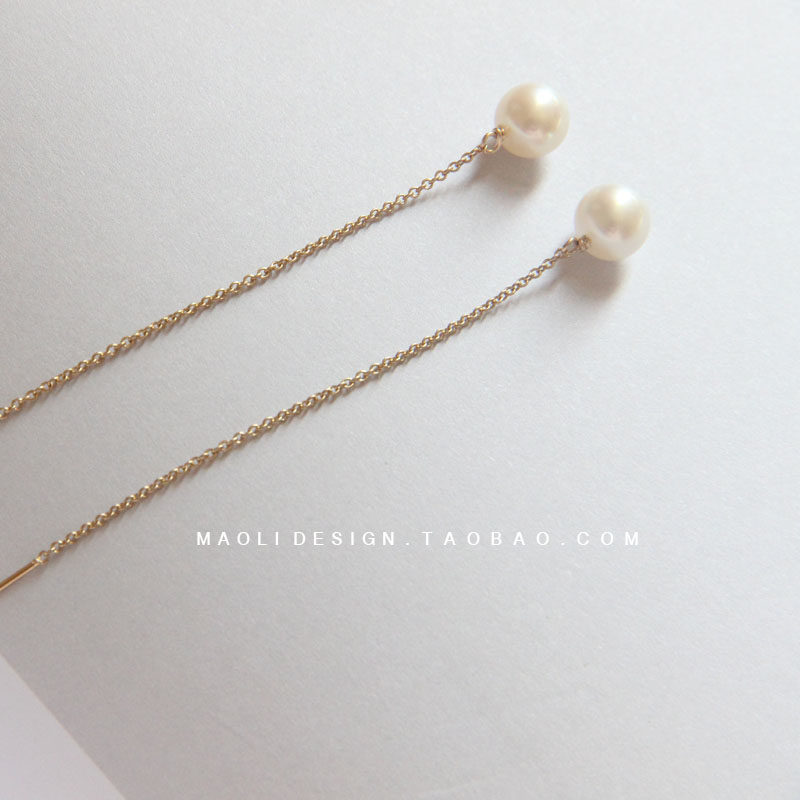 MAOLI Pure handmade Customized 14K BAG GOLD NATURAL FRESH WATER PEARL EARLINE MINIMALIST Temperament Ear Accessories