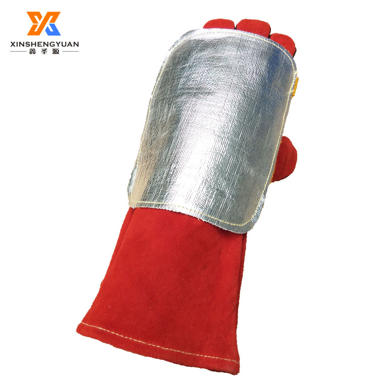 Cowhide Welder Reflective Aluminum Hand Shield Heat Insulation High Temperature Welding Gloves Welding Protective Products