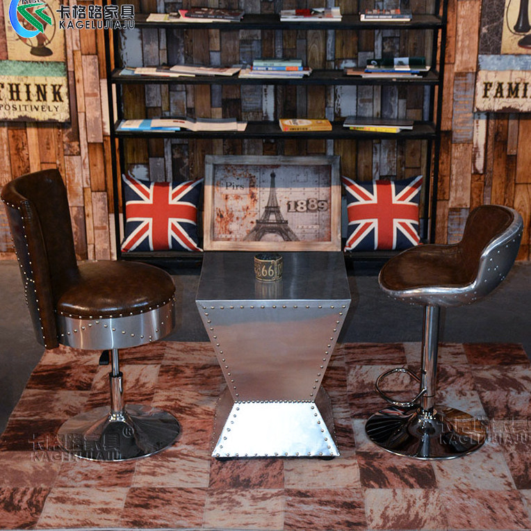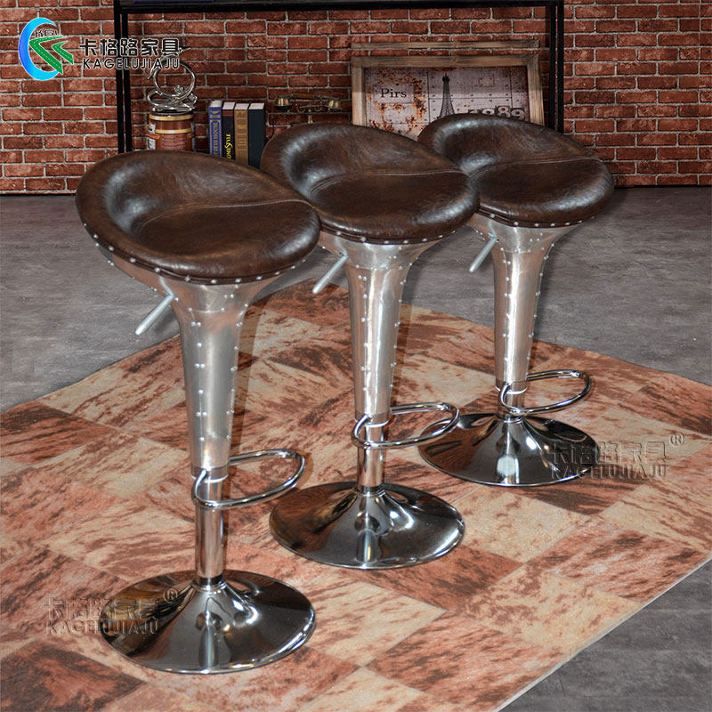 American lift chair aluminum leather bar chair personality swivel chair retro creative bar stool front desk high stool home backrest chair