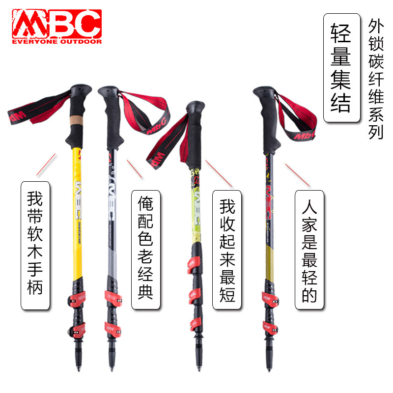 MBC carbon fiber hiking stick telescopic outer lock Ultra-light carbon telescopic men's and women's hiking outdoor walking stick crutch equipment