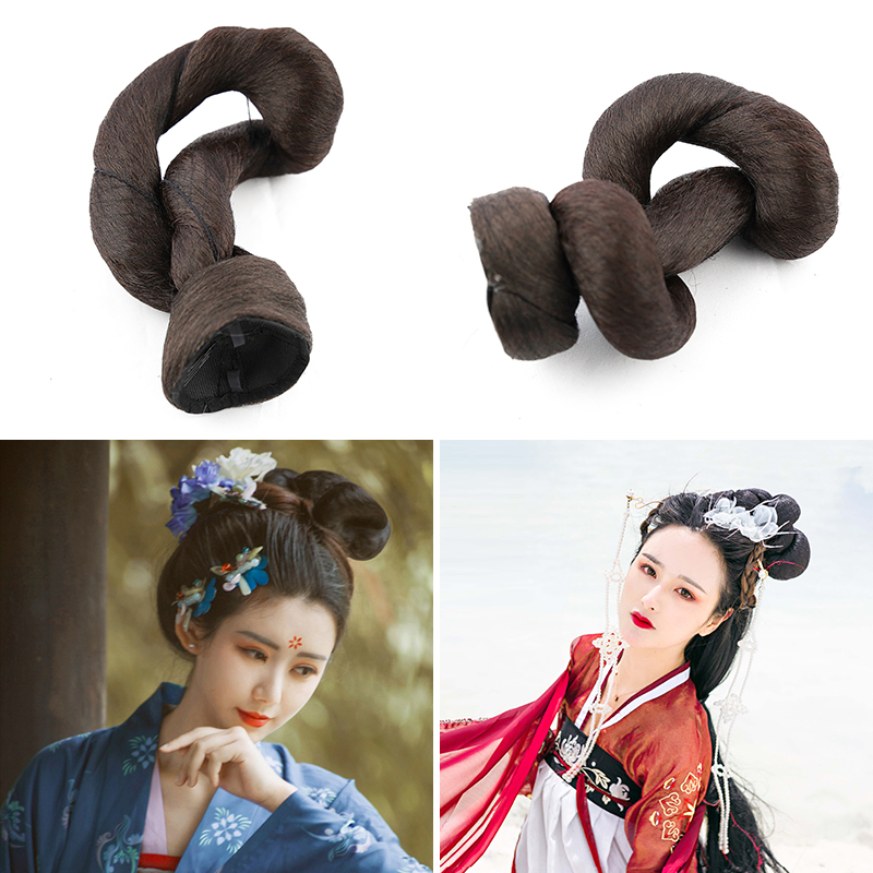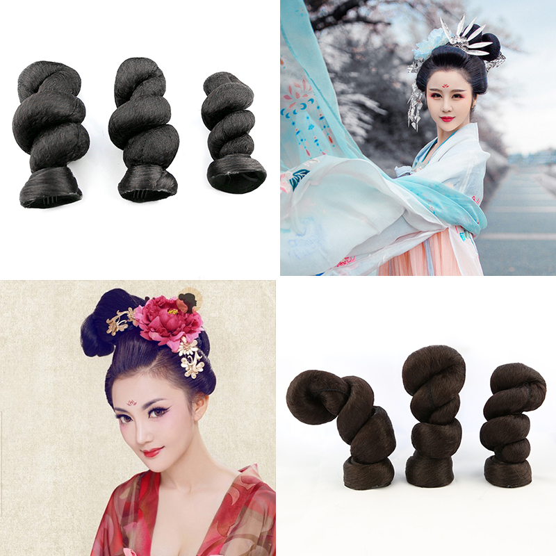 Xinyi Ancient Dress New Balls Head Wig Han Fu Lingen Snake Hair style Dress Style style Skirt Style Twist and Twist Hair Bag Ancient Wind Bag