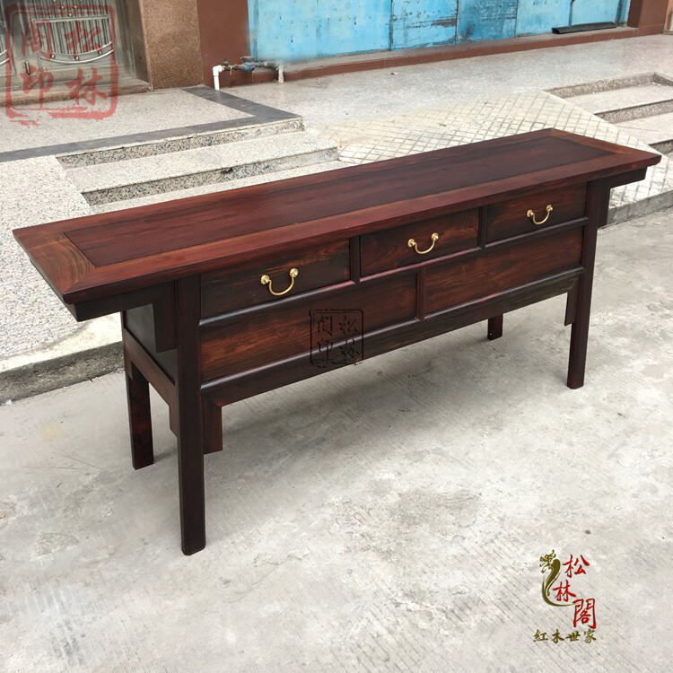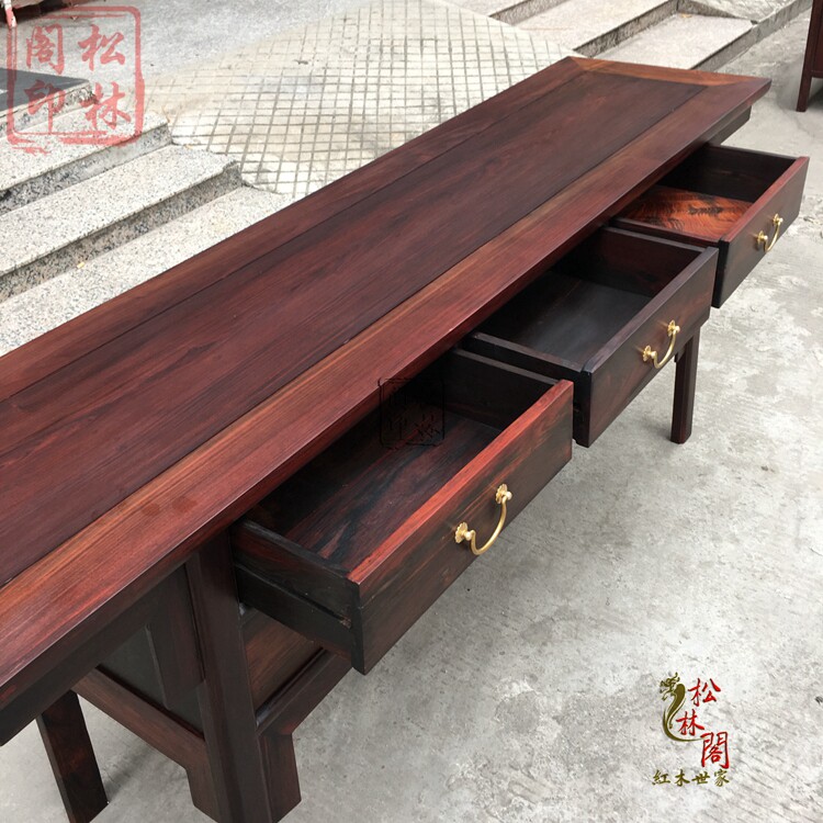 Red Wood Laos Big Red Acid Branches Case Chinese God Tai Guan Cabinet for Table Toe Yellow Sandalwood Flat Head Case Table With Drawer