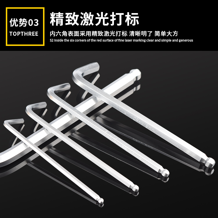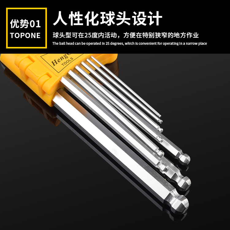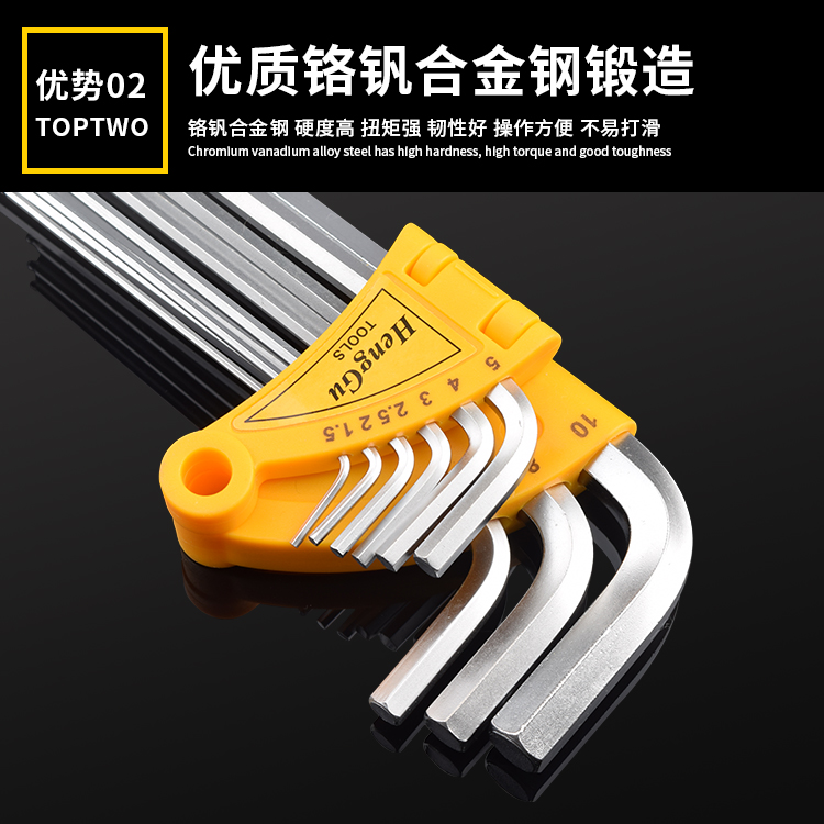 High-grade extended six-angle wrench 9-piece set of ball head flat head combination six square wrench maintenance hardware tools