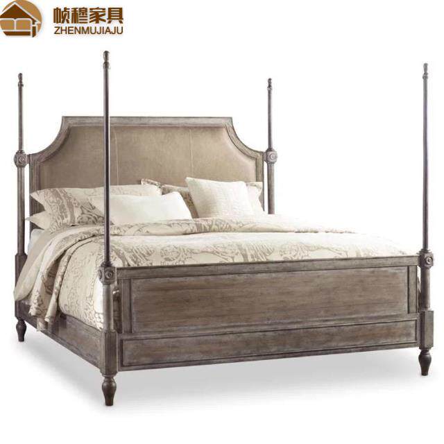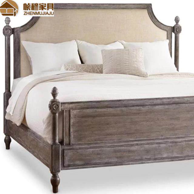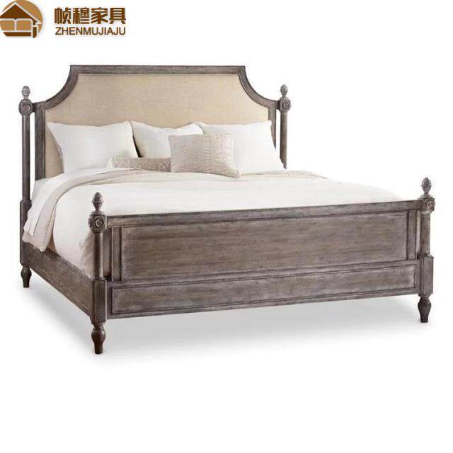 American countryside solid wood double bed bedroom retro for old furniture French style minimalist oak solid wood 1 8 m double-Taobao