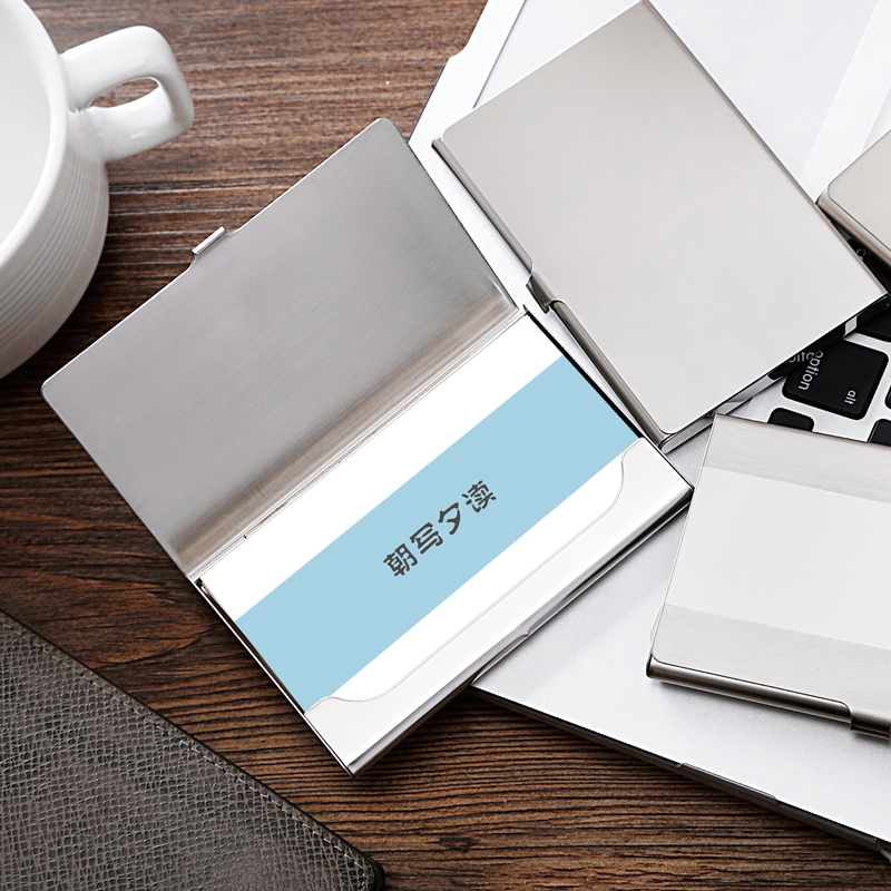 Exquisite portable stainless steel business card holder personalized lettering custom logo female male portable men and women business card box