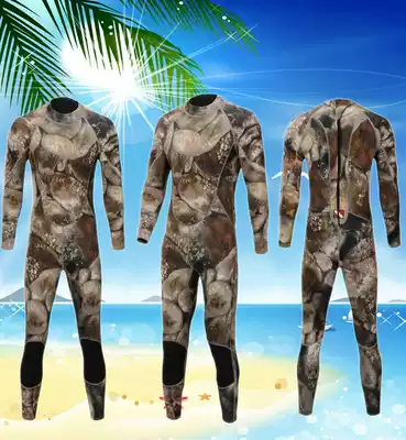 3MM camouflage free diving suit men's one-piece fish hunting camouflage jellyfish suit Warm tight sunscreen suit long-sleeved swimsuit