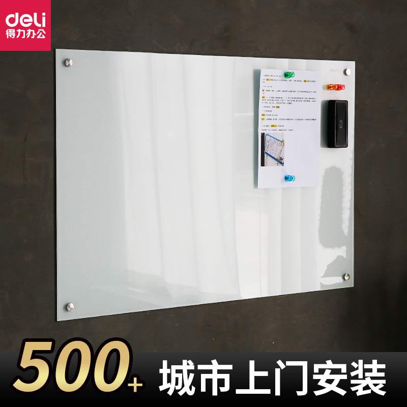 Deli tempered glass whiteboard bracket type magnetic mobile writing board Conference room teaching blackboard Vertical office training single-sided pulley day shift Household hanging erasable writing graffiti note board