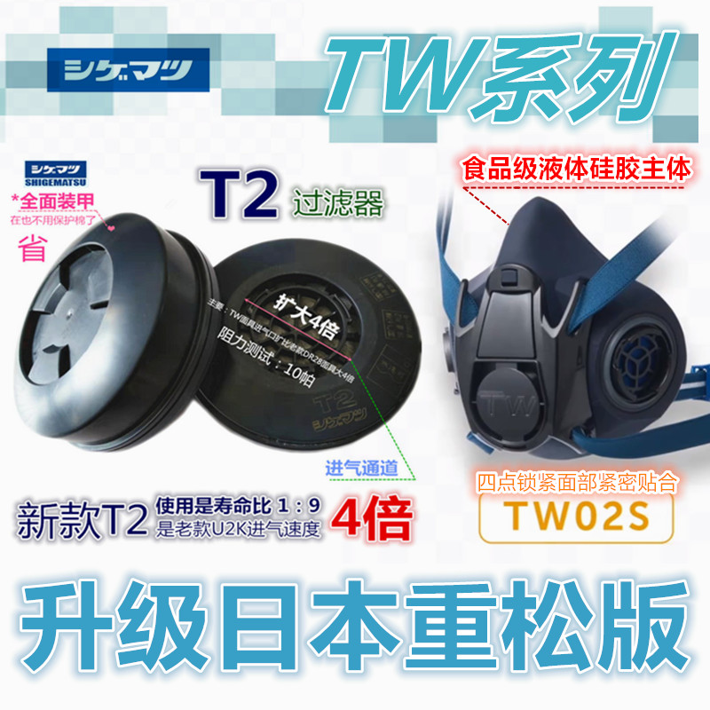 Original imported Japan Shigematsu mask TW mask upgrade new filter core T2 core washing regeneration overall armor