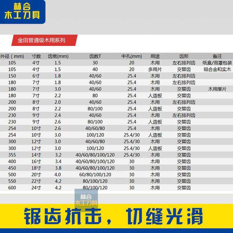 4 inches 105*1 5*30T*204 inches 105*1 5*40T*206 inches 150*1 8*40T*25 46 inches 150*1 8*