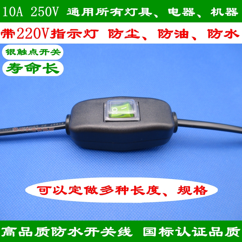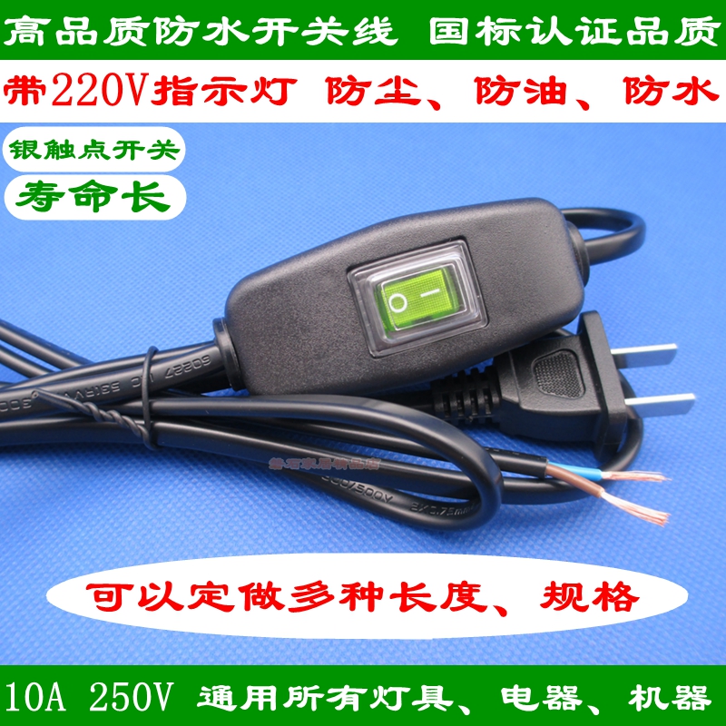 Waterproof switch line table lamp 2 foot plug line bathroom outdoor damp environment switch line 1 8 m 10A-Taobao