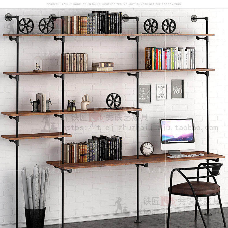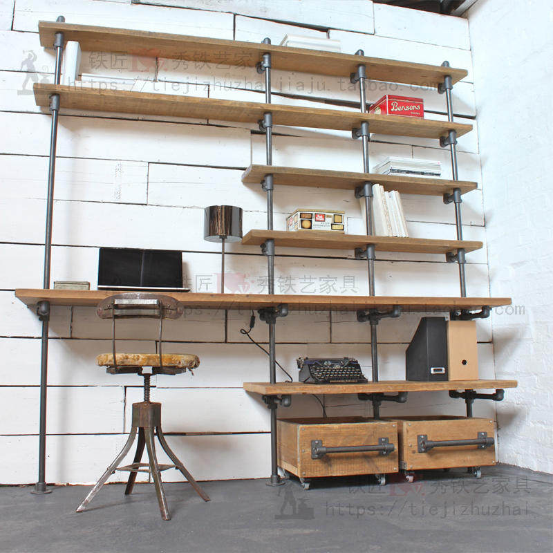 American industrial style Retro water pipe wall Bookshelf Desk Laptop desk Study desk Desk Office desk