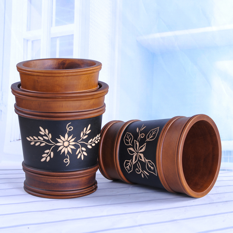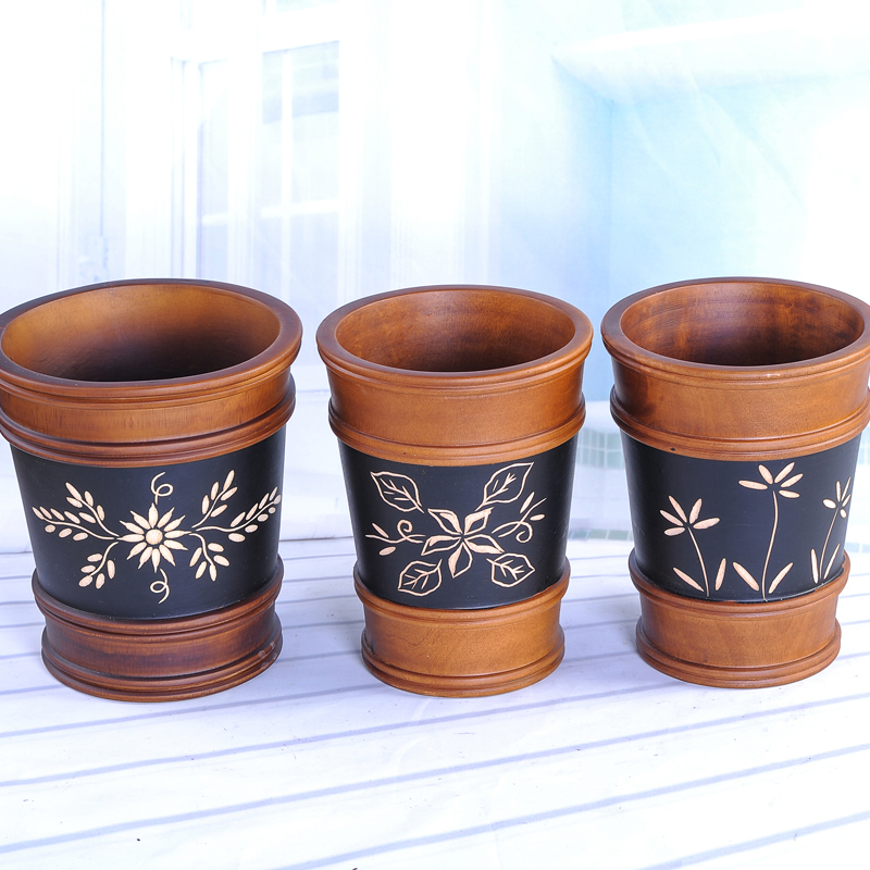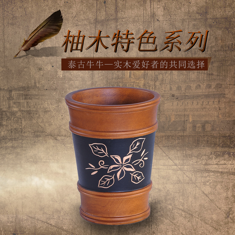 New Chinese trash can Thailand solid wood retro creative home living room bedroom kitchen trash can wooden high-end