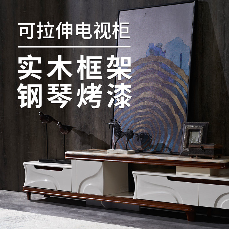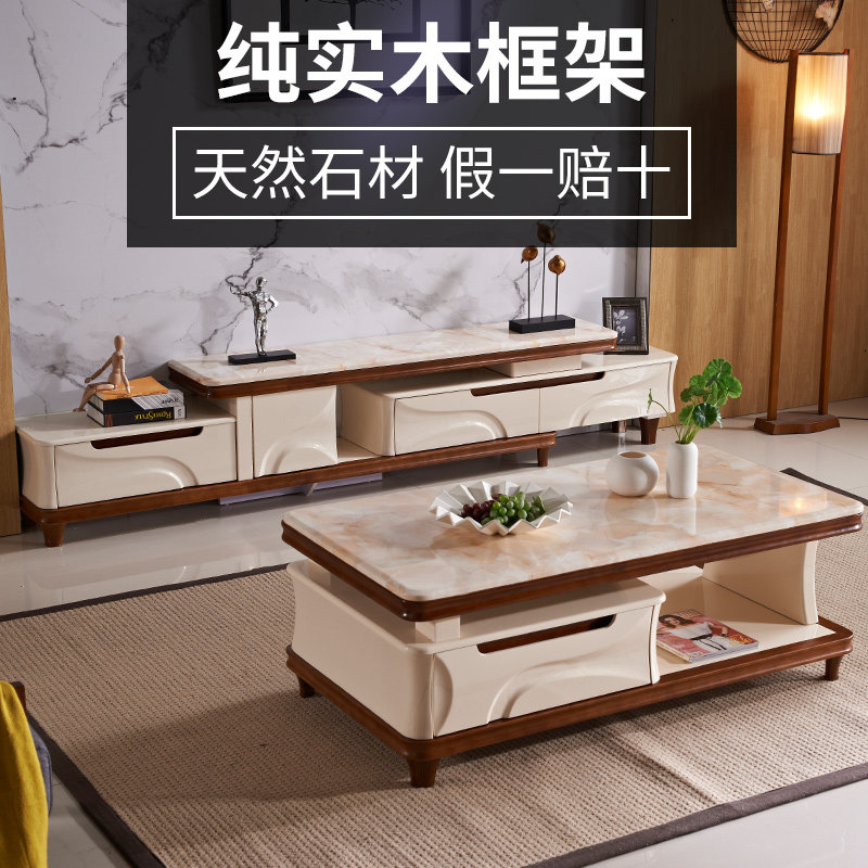 Marble TV cabinet coffee table combination set retractable solid wood modern minimalist living room small apartment furniture