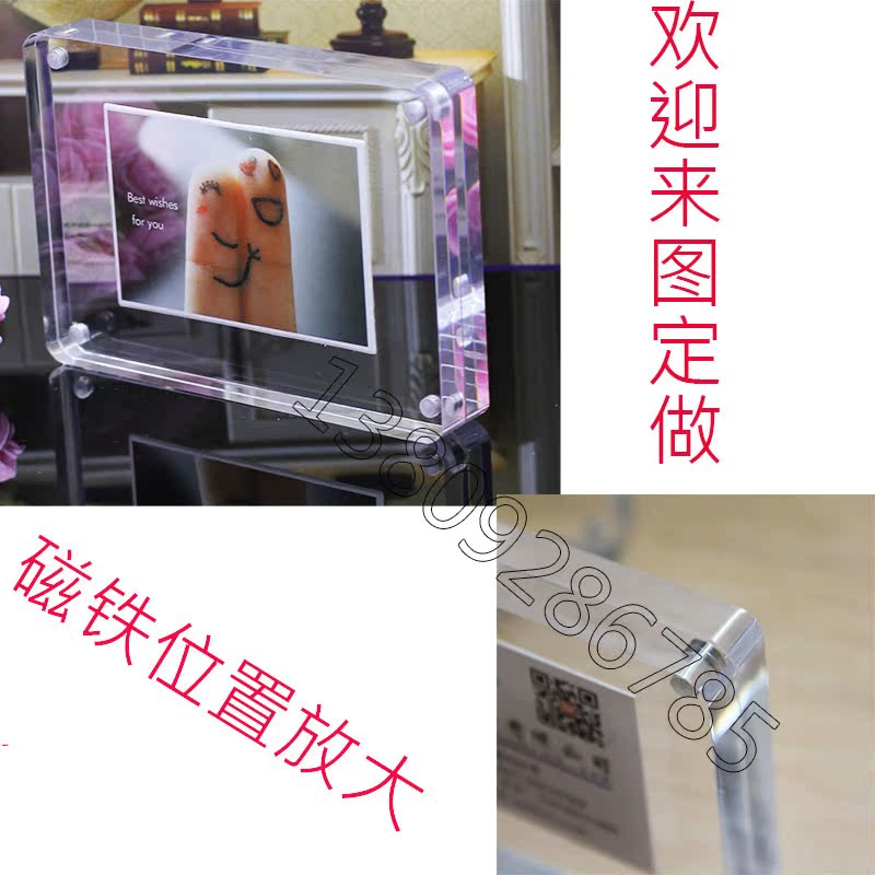 Acrylic crystal photo frame table 56781012 inch A4 double-sided glass magnet transparent table card table certificate holder