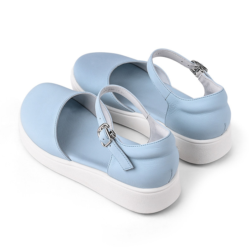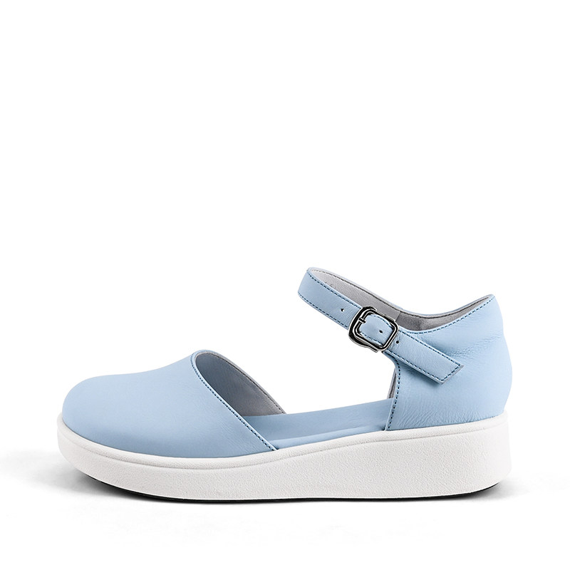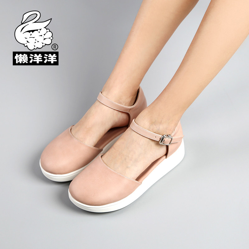 Lazy summer new leather soft bottom toe head hollow female sandals one word buckle thick bottom flat heel comfortable shoes 805A