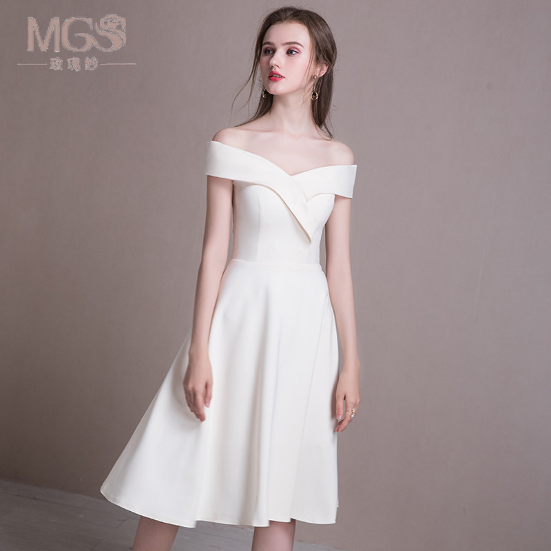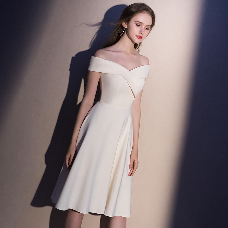 Advanced evening dresses 2021 new bridesmaids with a straight shoulder white registration collar license foreign dress light extravagant and high-end