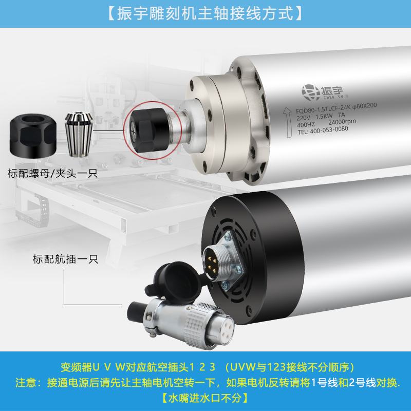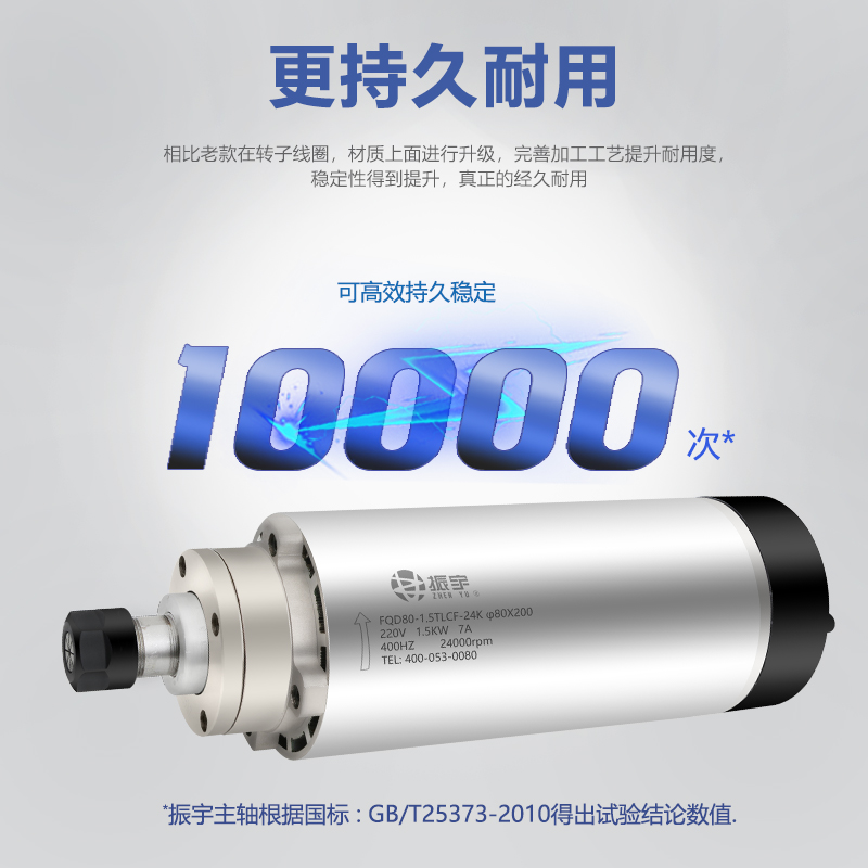 Zhenyu FQD 1.5kw electric spindle ceramic ball bearing air-cooled engraving machine spindle motor 80 diameter ER16