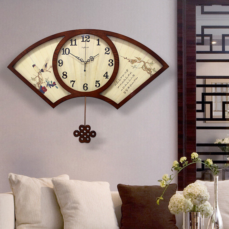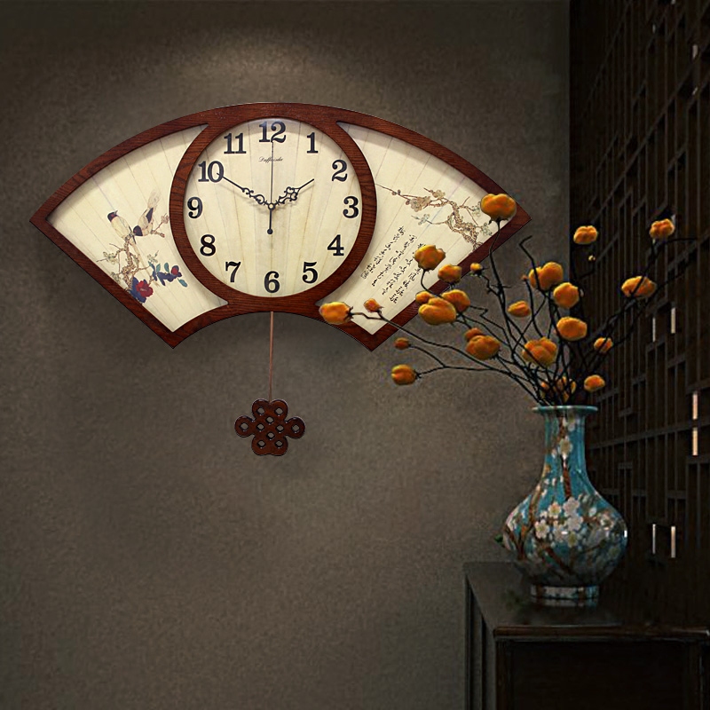 Retro wood-watch Chinese style hanging clock Living room Creative China Wind quietly Arts Decorative Clock Modern Quartz Clock