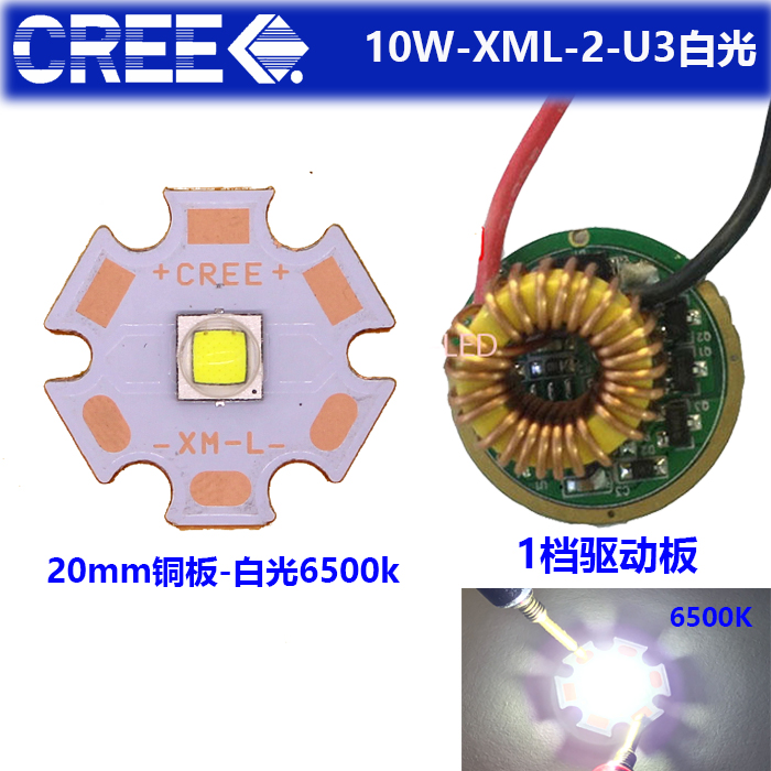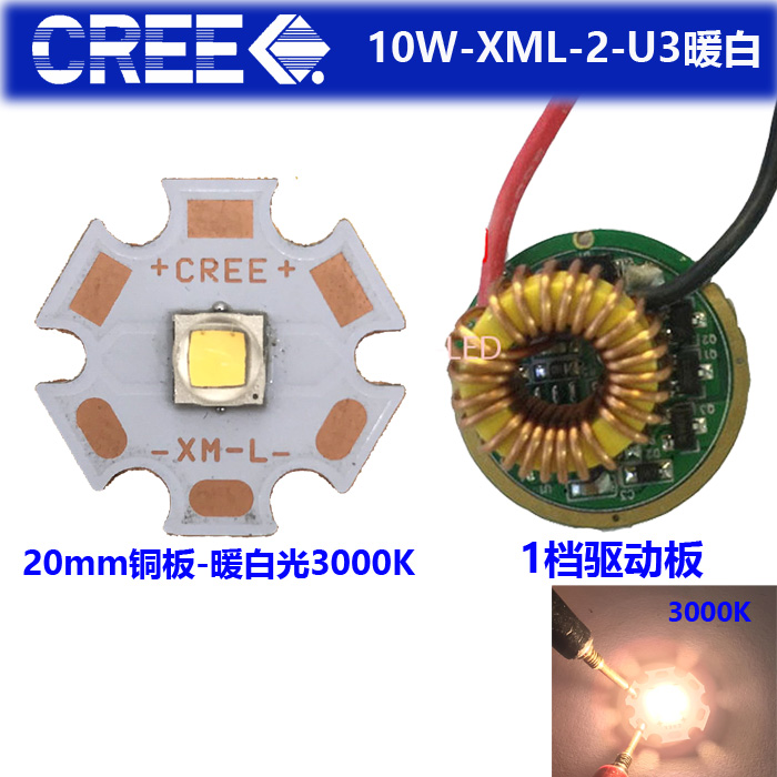 Separate 22MM-10W-1 gear driver board 20MM copper plate XML-2 white light 1 gear driver board 20MM copper plate XML warm yellow light 1 gear driver board 20mm-XM