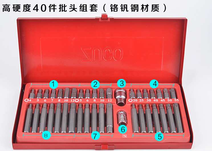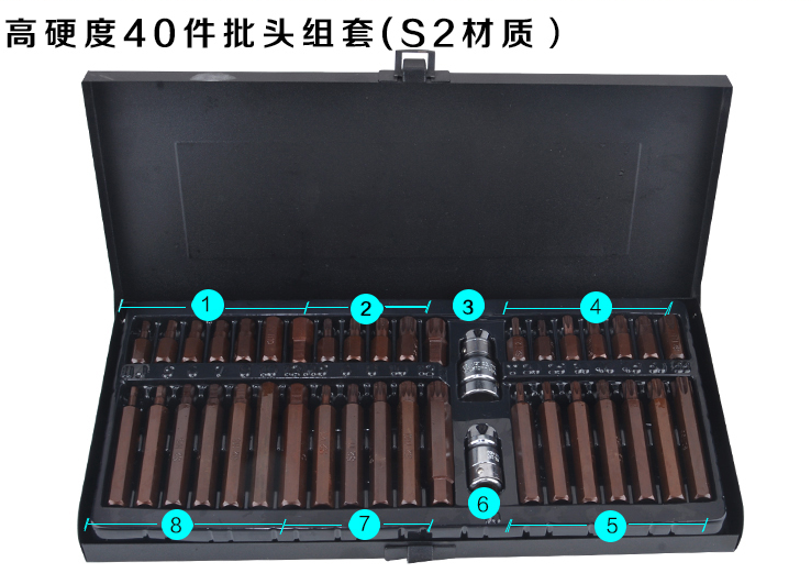40 40 pieces of S2 starred group sets CRV primary color batch head sleeve wrench air repair tool special inner six flower batch head