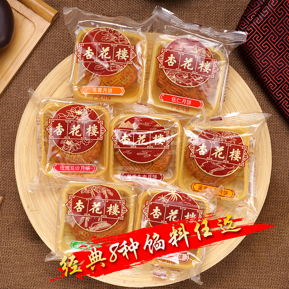 Xinghualou moon cakes, bean paste, cream, coconut, green beans, Cantonese-style five-nut Shanghai old brand 100g 1 egg yolk lotus paste