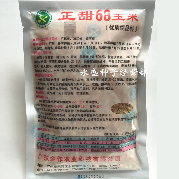 Positive sweet 68 ultra-sweet fruit corn seed high-yield disease resistance sweet corn seed Guangdong Academy of Agricultural Sciences 250 gr
