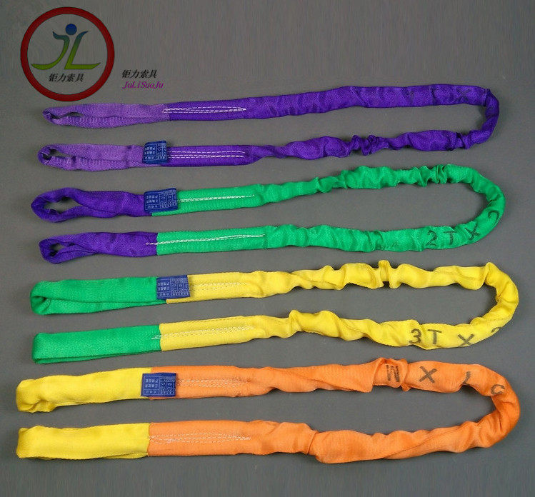 National standard industrial flexible lifting belt double buckle ring 3 5 10 tons lifting round soft lifting belt crane tree hanging rope