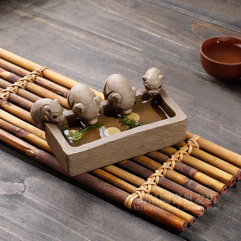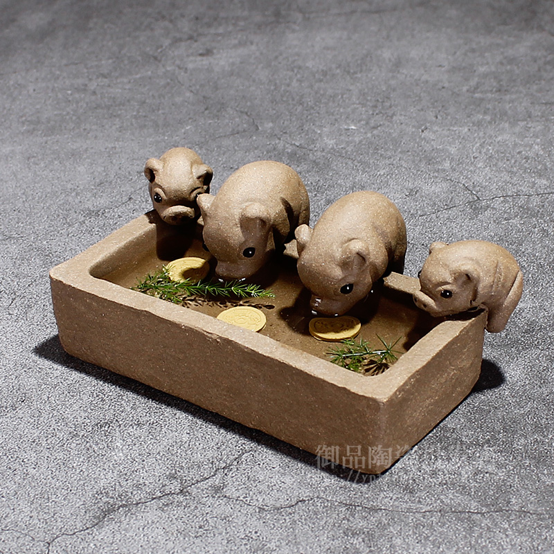 Creative Purple Sand Tea Spotting Pieces Handmade Small Pig Drinking Water Pig Trough Carved four Pig Fung Clothes Hiking and Pleasant Tea Playable