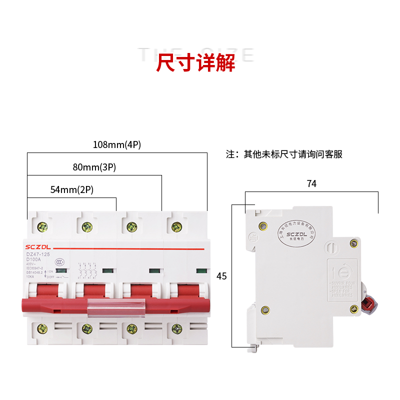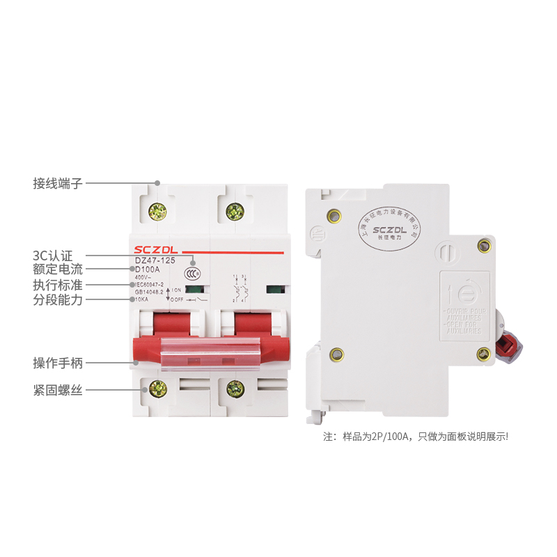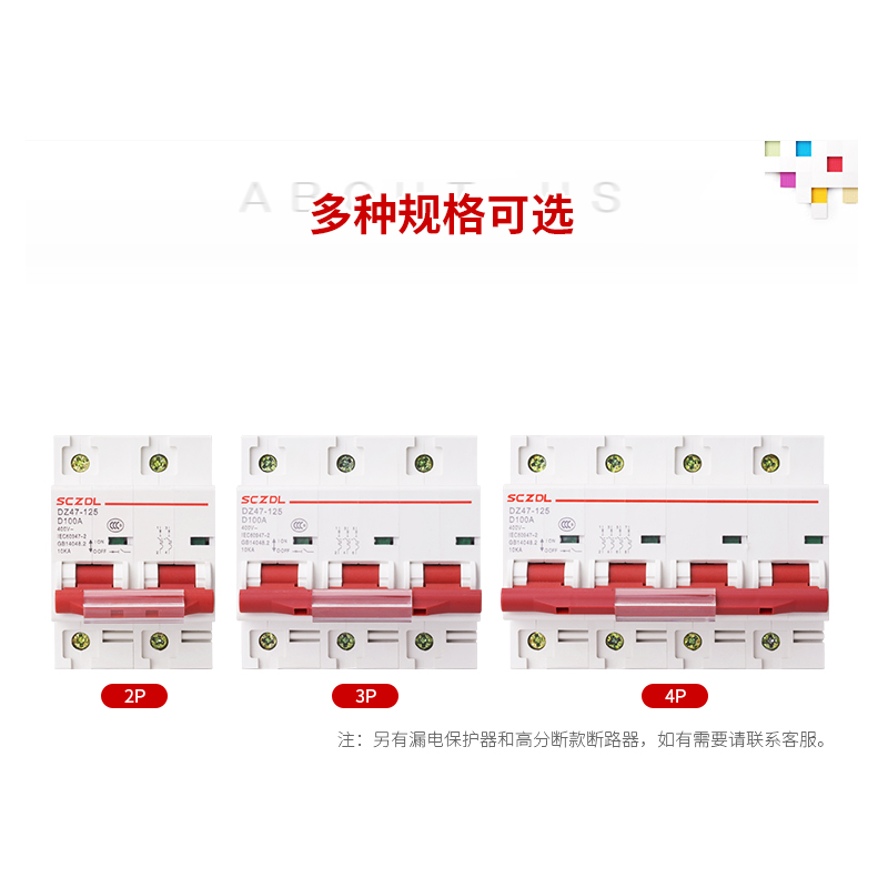 Breaker empty open DZ47-125 D type 2P 3P 4P 4P power 80A 100A Air switch Total brake knife