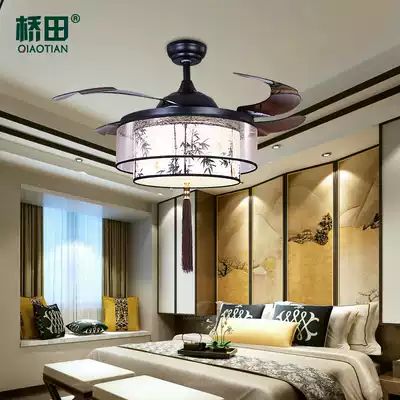 Package installation New Chinese invisible ceiling fan lamp Household electric fan chandelier Dining room Living room bedroom antique ceiling fan lamp