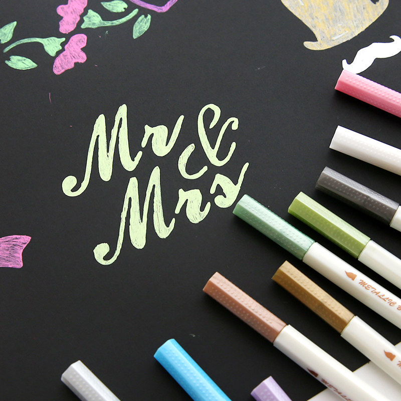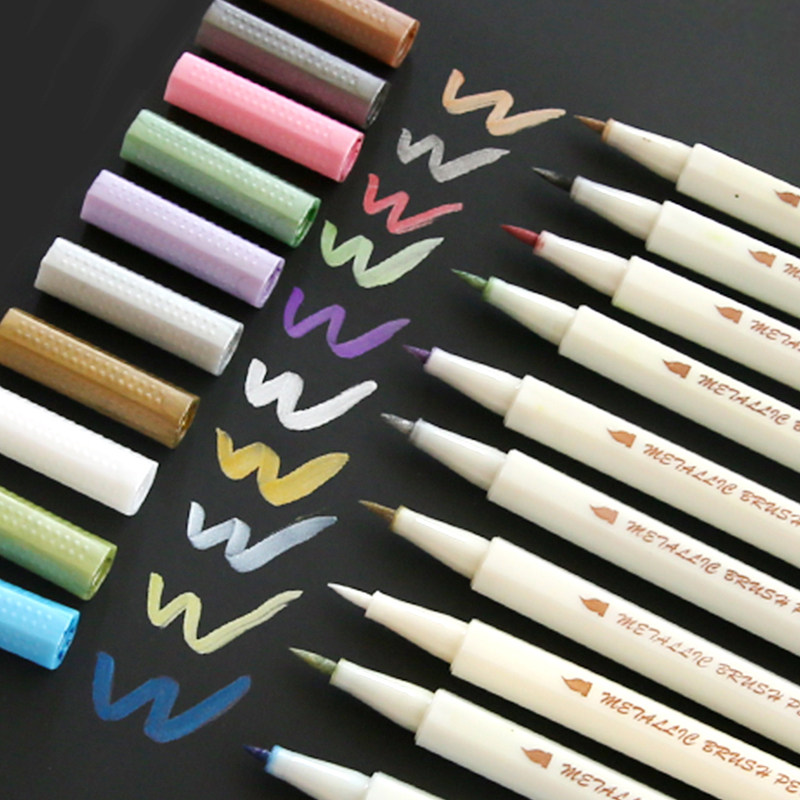STA gold pen Paint pen Metal color pearlescent soft hair note pen Hand notebook Doodle album pen set