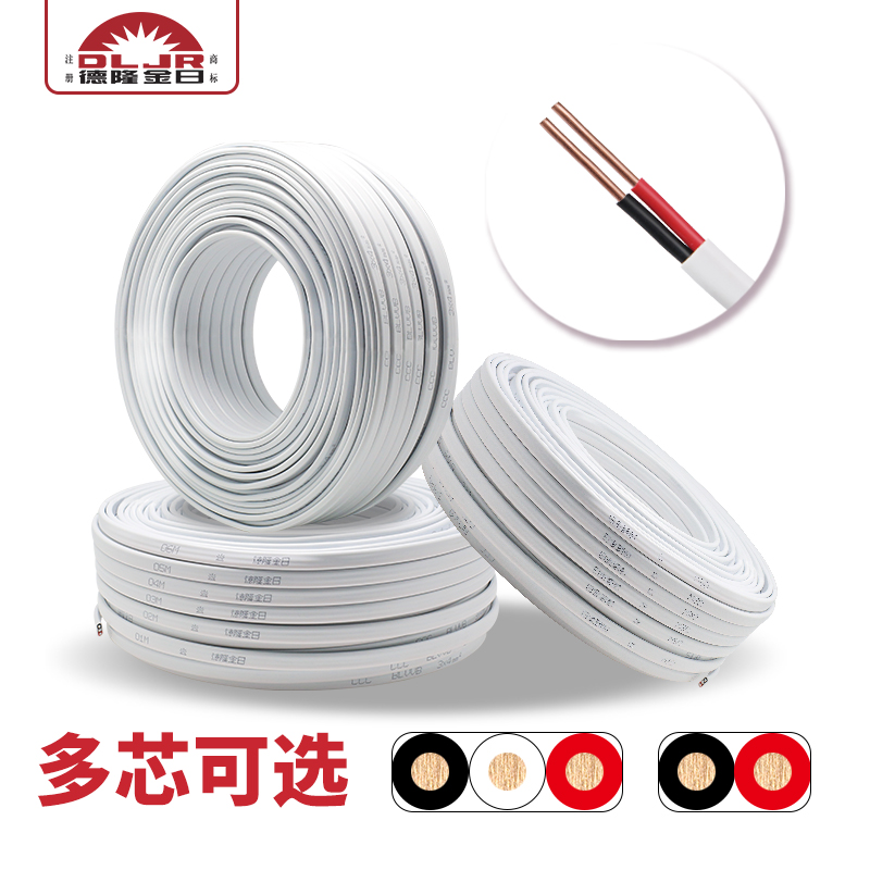 Positive national standard 2-core pure copper parallel line using No 1 oxygen-free pure copper and imported insulation Pi Delong Jinri brand self-operated stores straight hair line counter with the same (BVVB 2x1 square) (white