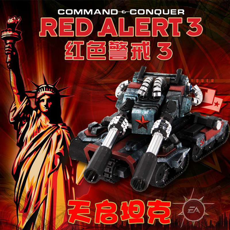 All metal DIY assembly model glue - free 3D stereo puzzle red - alarm color Tianqi Tank New Model