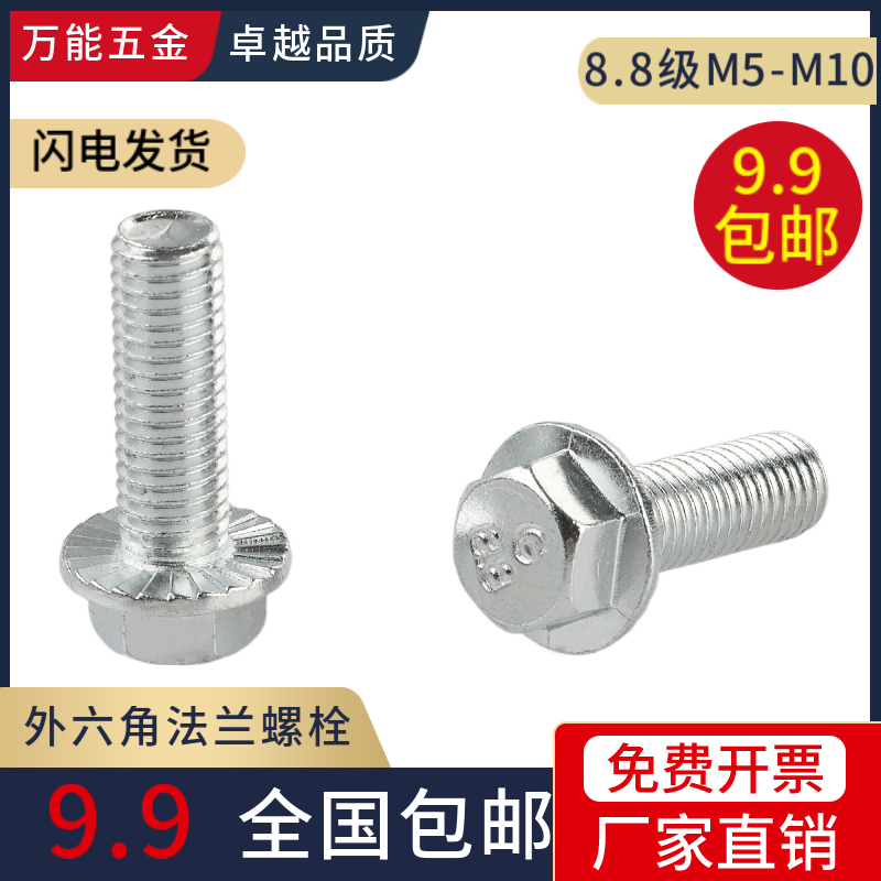 8 8 Class galvanized non-slip toothed outer hexagonal flange bolt hexagonal flange face screw screw M5M6M8M10