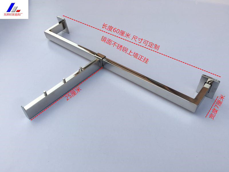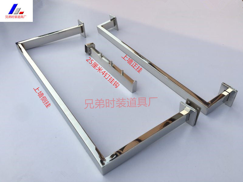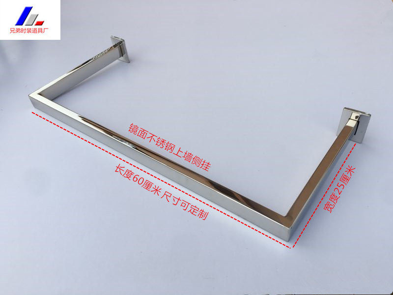 Clothing store on the wall stainless steel brushed rose gold front side hanging display rack wall clothing hanging clothes rack